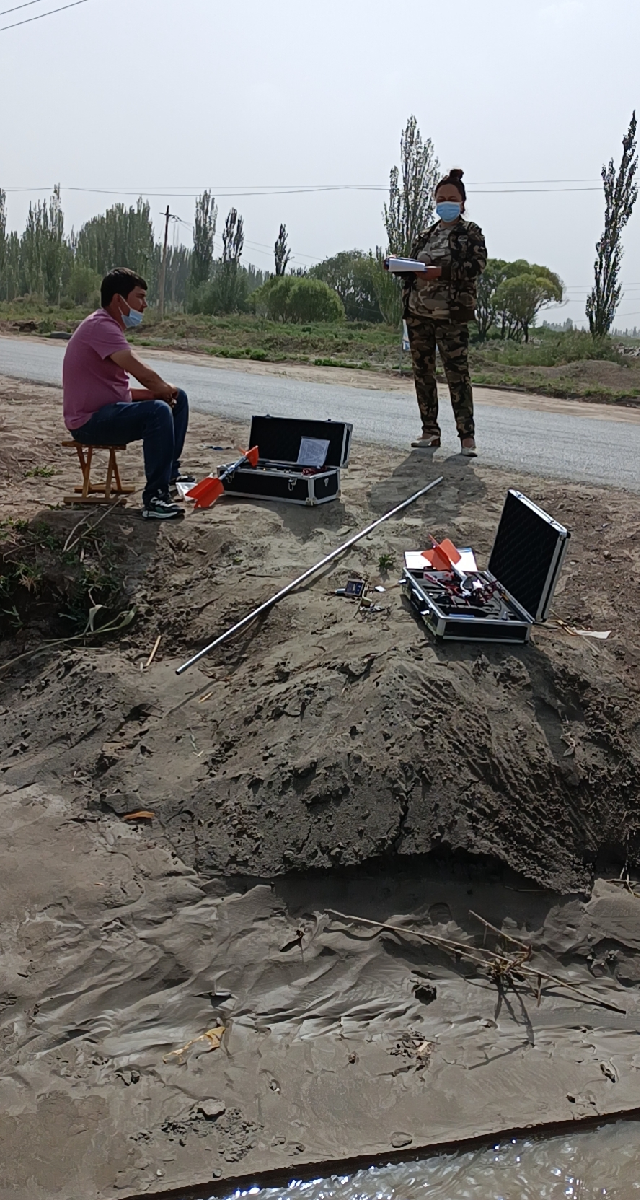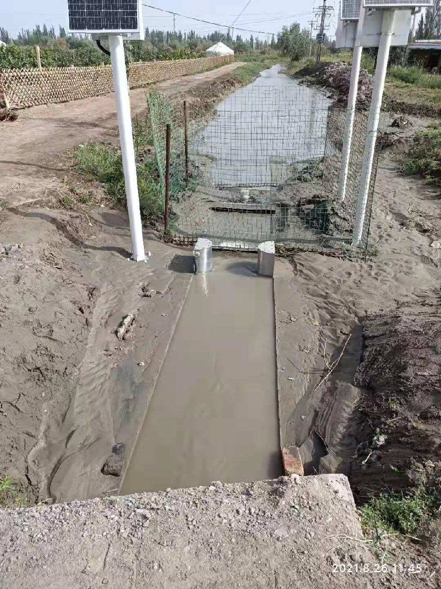 2021年8月26日,巴楚县水利局组织对胜利1号闸已安装运行的智能明渠量水器设备进行实时精度比对测验工作。通过开展本次实时精度比对检测,对测量结果进行比对分析,验证了智能明渠量水器在含沙量大且有淤积的渠道中运行测量精度高这一优越性。 巴楚县水利局测量队比测方法为人工转子流速仪测量,测量时间为11:50至12:00,在选择3条垂线,测3处不同深度流速的情况下,测得实时流量为0.293m³/s。同时段智能明渠量水器上报流量为0.286m³/s。相对误差约为2.4%。 此站点安装R1000型智能明渠量水器,渠道为矩形渠道,渠宽1米,深1米,。渠道水体中含沙量较大。根据现场实际查看情况,量水器上下游渠段中底部均存在较厚的泥沙淤积现象,智能明渠量水器上游导水管口附近15公分内,量水器测流段中、量水器下游导水管口所在位置中,渠道底部均无泥沙淤积。